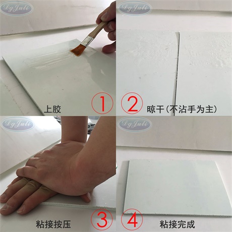3、黏接無孔材料時,在被黏物表面均勻涂抹ABS專用膠黏劑,是單面上膠,無需晾直接把黏結(jié)面對準(zhǔn)粘合到一起并壓實(shí)1~2小時,24小時后可達(dá)到高強(qiáng)度。