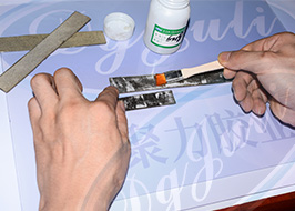 3、在被黏物表面均勻涂抹高強(qiáng)度金屬膠水,在金屬板雙面涂膠膠,稍晾5-8分鐘后,待略微有些粘性時(以手觸摸),把黏結(jié)面對準(zhǔn)粘合到一起并壓實1~2小時,24小時后可達(dá)到高強(qiáng)度。