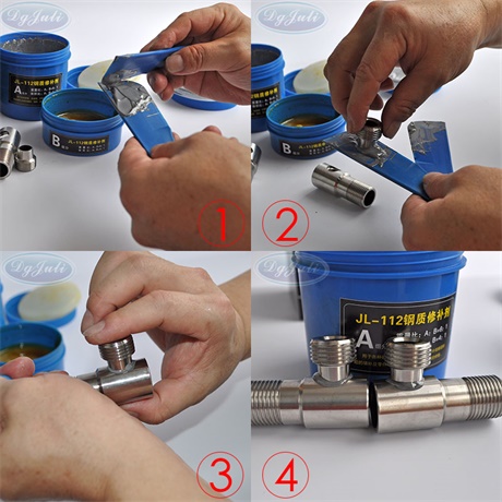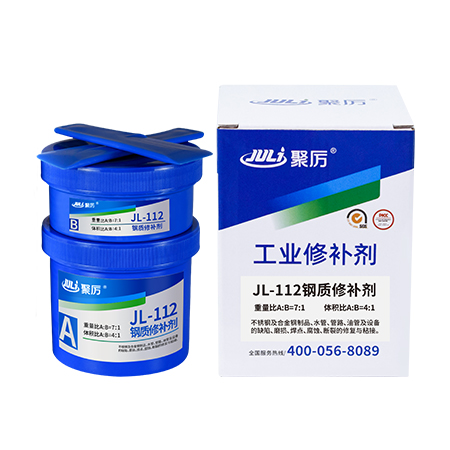 聚厲牌JL-112不銹鋼膠水為膏狀,不流淌,以不銹鋼為強化填充劑,耐磨損,耐腐蝕,適用于金屬不銹鋼、鋁、鐵、銅、金屬鑄件、金屬電鍍件等材質(zhì)的粘合。用途非常廣泛,同時應用于各種不銹鋼及合金鋼制品、容器、管路、零件及設(shè)備的缺陷、磨損、劃傷、腐蝕、斷裂的修補修補等。