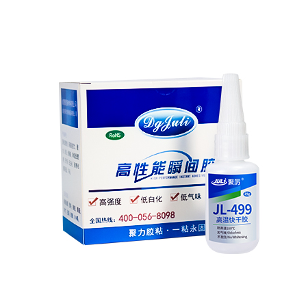聚厲牌JL-499耐180℃高溫型瞬間膠主要成份氰基丙稀酸酯, 符合環(huán)保標(biāo)準(zhǔn),已通過(guò)歐盟ROHS標(biāo)準(zhǔn)和SGS檢測(cè)。防水,耐高溫.適用于金屬電鍍材料,塑膠,橡膠等之間的粘接,金屬粘接,高強(qiáng)度抗沖擊抗剝離。 具有高性能、高強(qiáng)度、單組分、防水,耐高溫,耐老化等優(yōu)異性能,非常適合連續(xù)化生產(chǎn)線作業(yè)。