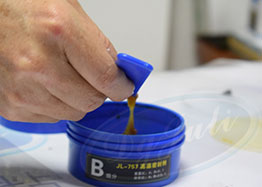 2、涂膠:聚厲牌高溫修補(bǔ)劑是由A、B雙組份組成,使用時(shí)嚴(yán)格按規(guī)定的配合比將主劑A和固化劑B充分混合到顏色均勻一致,并在規(guī)定的可使用時(shí)間內(nèi)用完,剩余的膠不可再用;