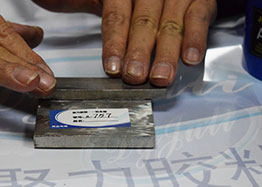 3、將混合好的耐350度修補(bǔ)劑涂抹在經(jīng)處理過的基體表面,涂抹時(shí)應(yīng)用力均勻,反復(fù)按壓,保證材料與基體表面充分接觸,以達(dá)到效果更佳。需多層涂膠時(shí),需對(duì)原涂膠表面進(jìn)行處理后再涂抹;