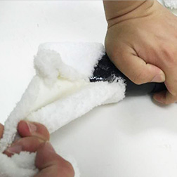 將混好的膠液均勻涂布于其中一表面,并用力壓實(shí)。 -