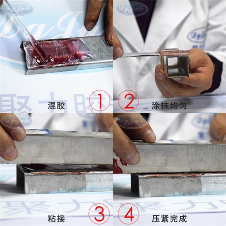 2、使用時將A、B組分按1:1比例混合攪拌均勻,涂于被粘物表面,