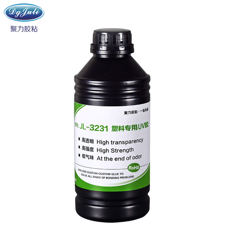 聚厲牌JL-3231塑料專用UV膠廣泛用于工藝品、禮品包裝、塑料掛鉤、電子電器、LED燈飾、醫(yī)療行業(yè)、玻璃制品行業(yè)等透明塑料材的強(qiáng)力粘接。具有耐老化、柔韌性好、刺鼻性氣味小、高透明耐黃變、等優(yōu)點(diǎn)。