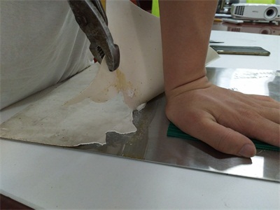 3、聚厲牌金屬粘PVC膠粘劑在被黏物表面均勻涂抹金屬膠黏劑,在金屬與PVC材質雙面涂膠膠,稍晾5-8分鐘后,待略微有些粘性時(以手觸摸),把黏結面對準粘合到一起并壓實1~2小時,24小時后可達到高強度。